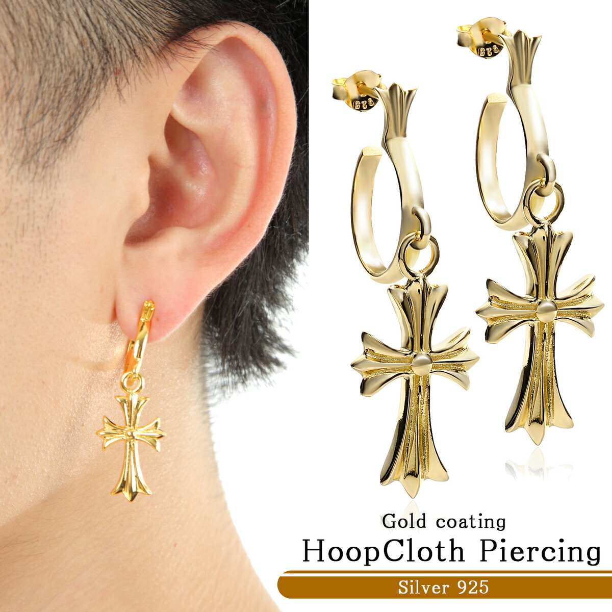 ピアス メンズ レディース リング 片耳 金 銀 十字架 Blackdia ベビーファット クロス ドロップ フープ ピアス Ps 001 Sbg Official Store 通販 Yahoo ショッピング